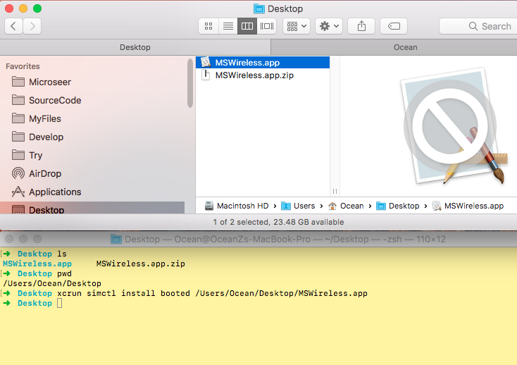 xcrun simctl install booted /path/MSWireless.app