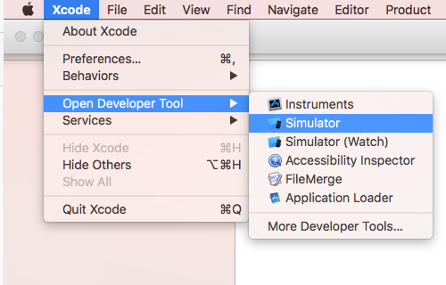 - Xcode -> Open Developer Tool -> iOS Simulator